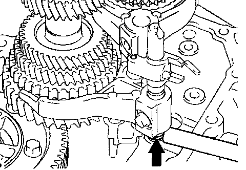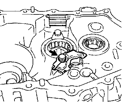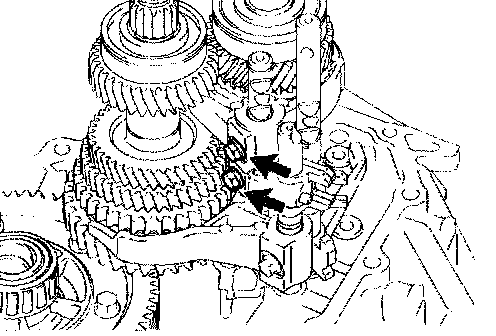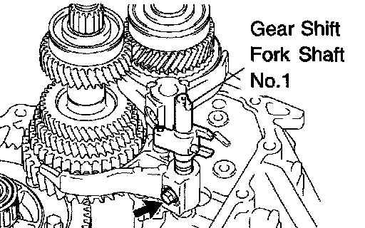 NOTICE: To avoid the interference of the 2 shift fork balls, lift up the gear shift fork shaft No. 3 at the position shown in the illustration.