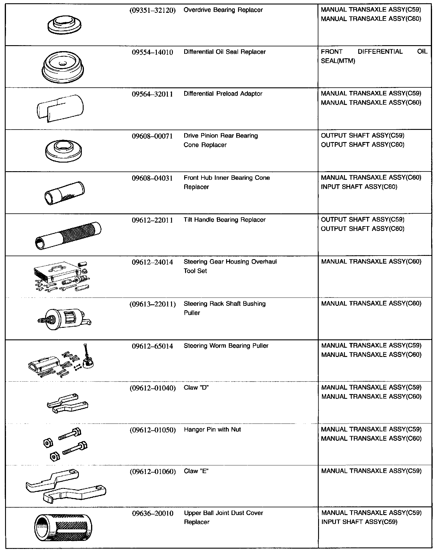 Manual Transmission/ Transaxle - Recommended Tools Part 1: