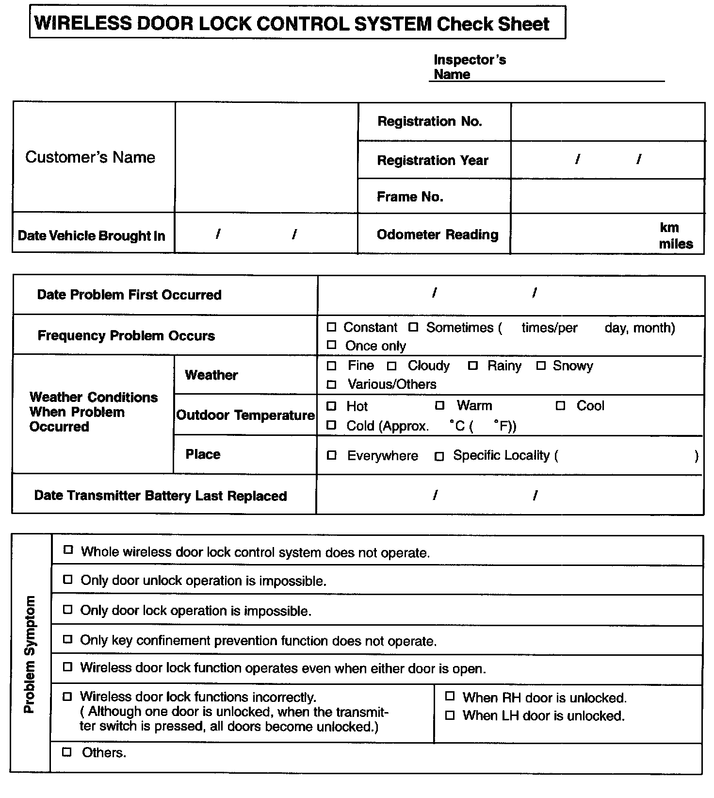 Wireless Door Lock Control System Check Sheet: