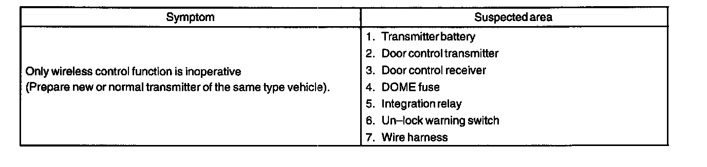 Problem Symptoms Table: