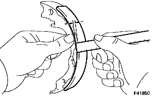 If the lining thickness is at the minimum thickness or less, or if there is severe, uneven wear, replace the brake shoe.