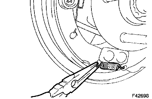 b. Using a needle-nose pliers, install the anchor spring to each brake shoe.