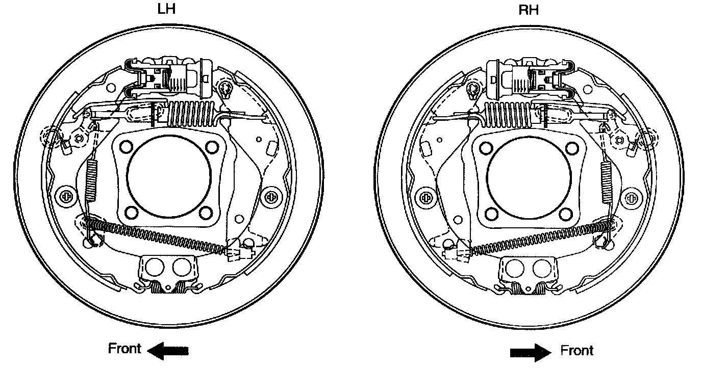 NOTICE: There should be no oil or grease adhering to the friction surfaces of the shoe lining and drum.