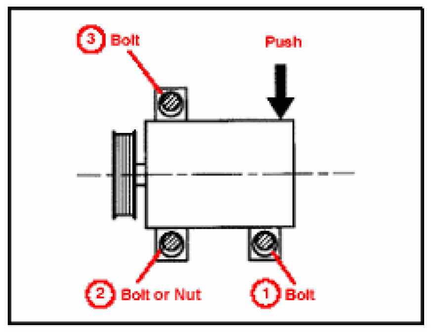 Push down on the rear side of the compressor and tighten the bolts/nut in the order shown.