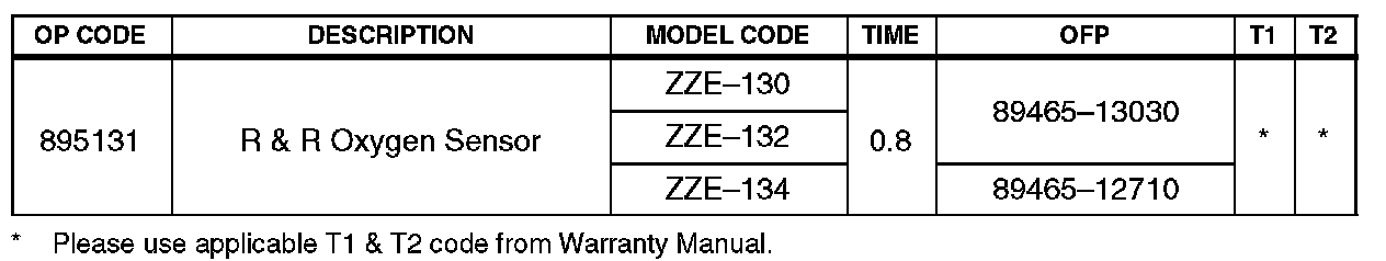 Certain 2003 model year Corolla and Matrix vehicles equipped with a 1ZZ engine may exhibit a M.I.L. "ON" condition with Diagnostic Trouble Codes P0125, P0130 or P0133 in the Engine Control Module (ECM). Use the following procedure to inspect and replace the Oxygen Sensor 1.