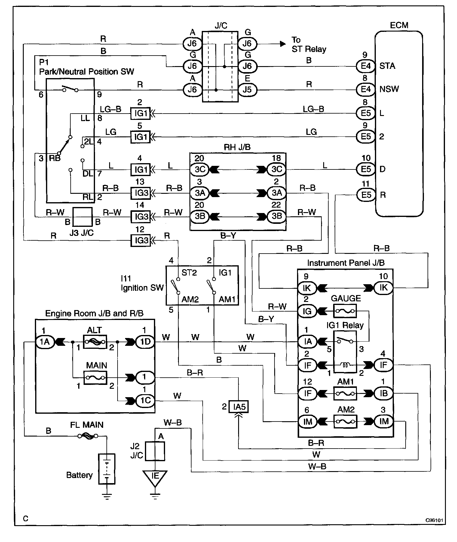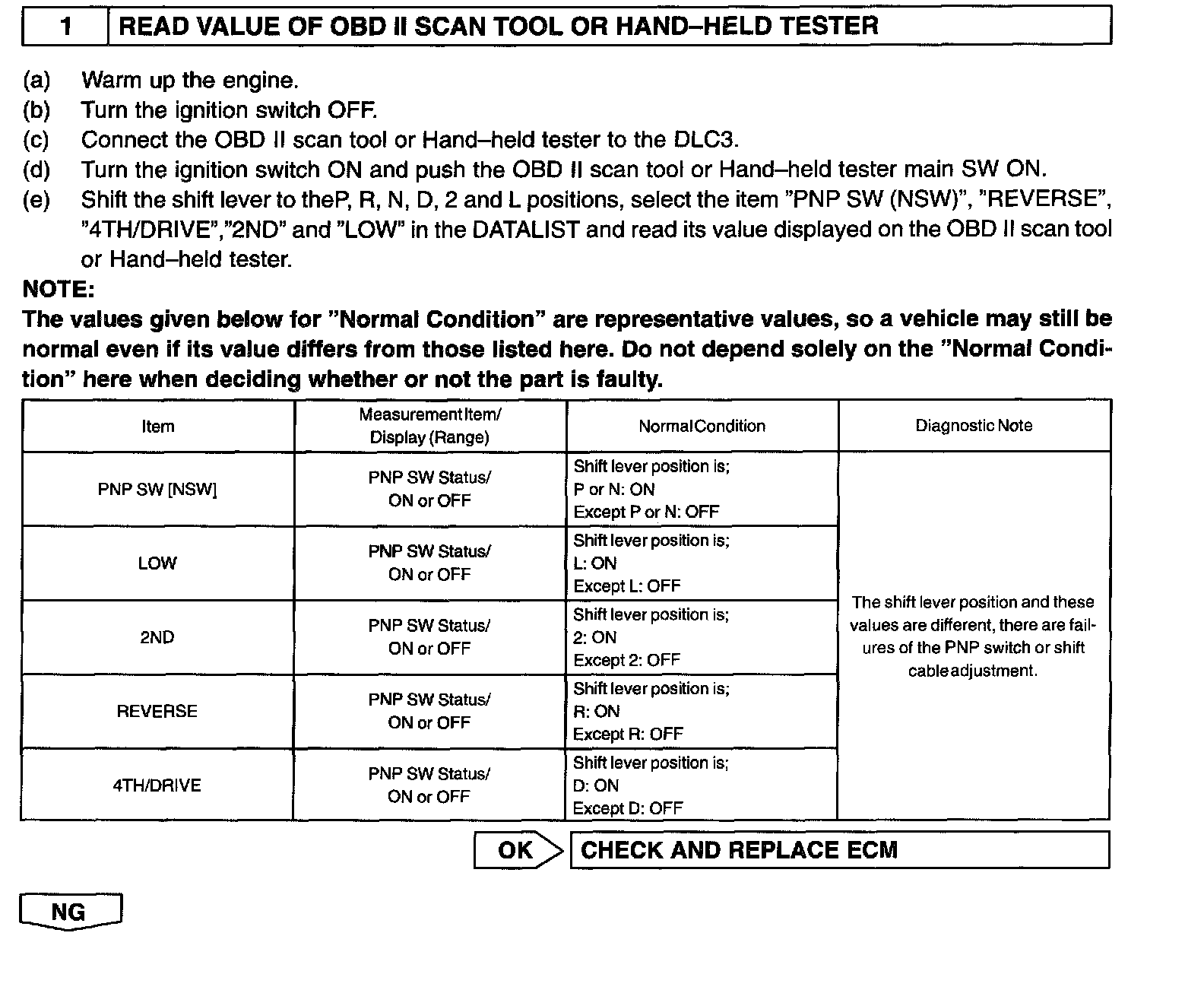 The park/neutral position switch detects the shift lever position and sends the signals to the ECM.