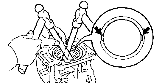 NOTICE: Place the brass bar on the rib of differential side bearing retainer.