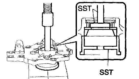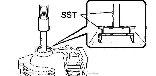 If the preload is less than the specification, retighten the nut 5° to 10° each at a time with SST, and adjust so that the starting torque meets the specified value.