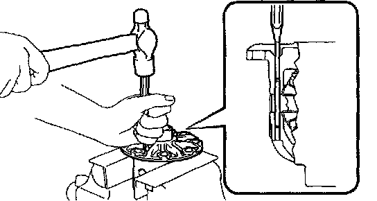 e. Using a chisel and a hammer, stake the outside of the differential case pin hole.