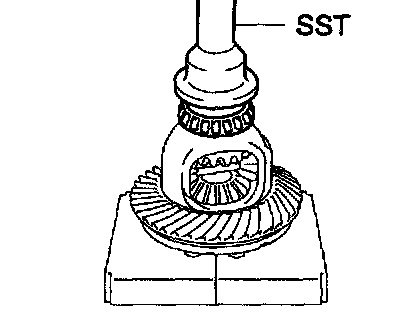 b. Using SST, adjust the drive pinion preload by tightening nut.