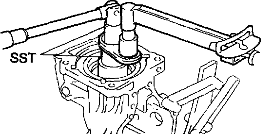 a. Using SST, remove the case bearing (LH) from the differential case.