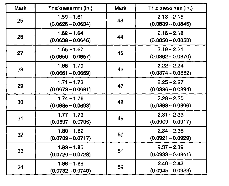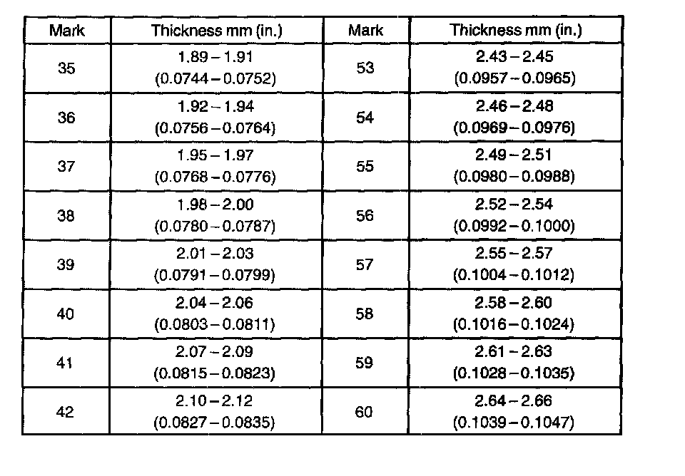 HINT: Refer to the table and select 2 thrust washers, which ensures that the backlash is within the specification.