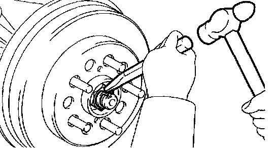 a. Using a chisel and a hammer, stake the rear axle shaft LH nut.