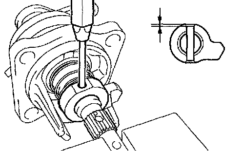 d. Using a brass bar and a hammer, tap in the snap ring to the shift & select lever shaft.