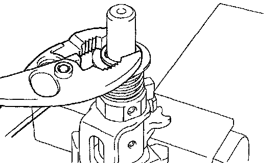 b. Using a plier, install the E-ring to the shift & select lever shaft.
