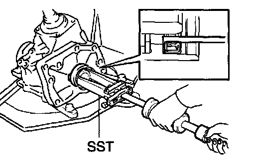 a. Using SST, a screwdriver and a hammer, remove the transfer output shaft spacer No. 1.