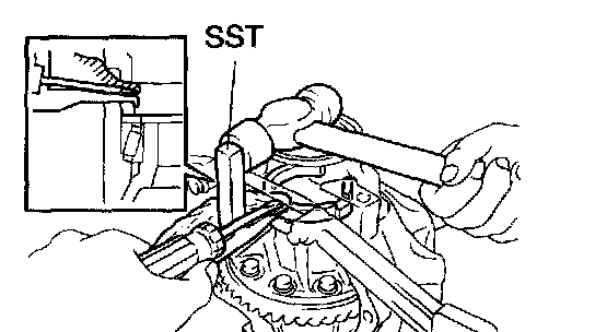 f. Using SST and a press, press the ring gear mounting case bearing LH outer race into the case.