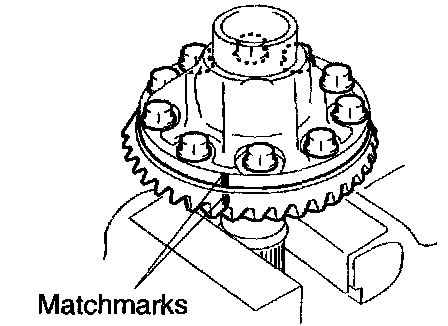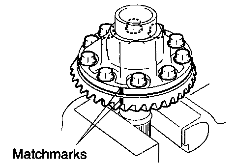 a. Make matchmarks on the ring gear mounting case and the ring gear.