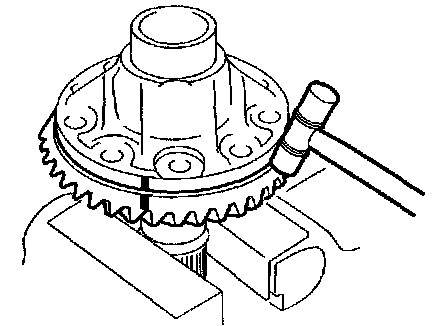 c. Using a plastic hammer, tap on the ring gear to separate it from the ring gear mounting case.