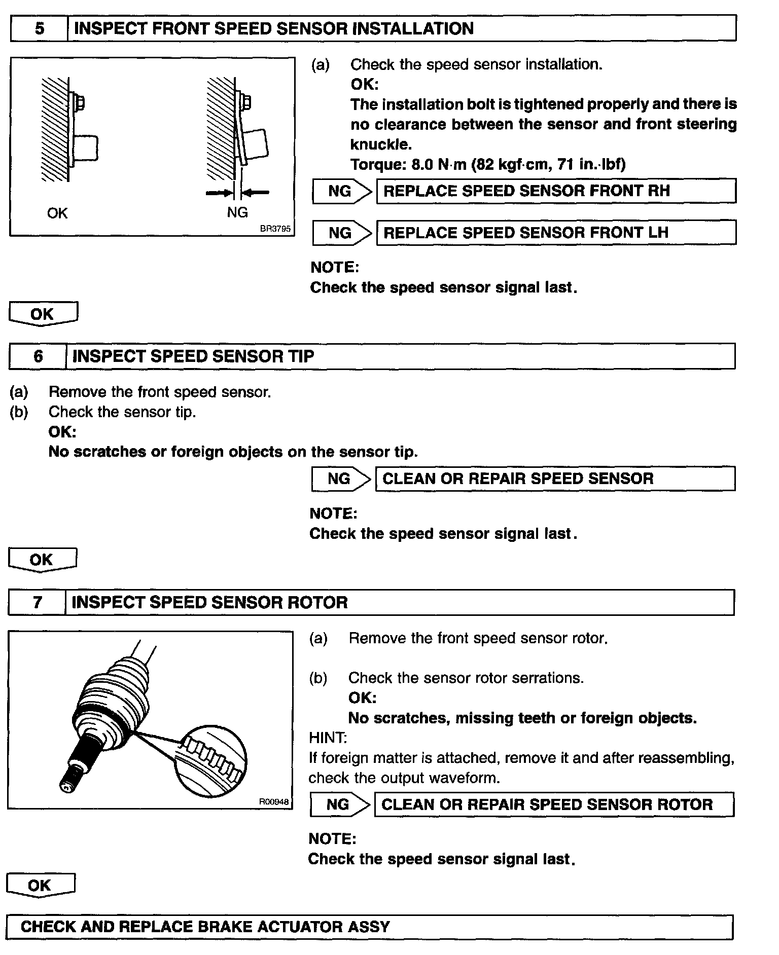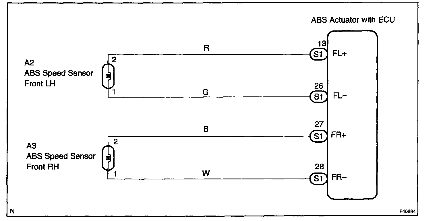 The speed sensor detects wheel speed and transmit the appropriate signals to the ECU. These signals are used for control of the ABS control system. Each of the front and rear rotors has 48 serrations.