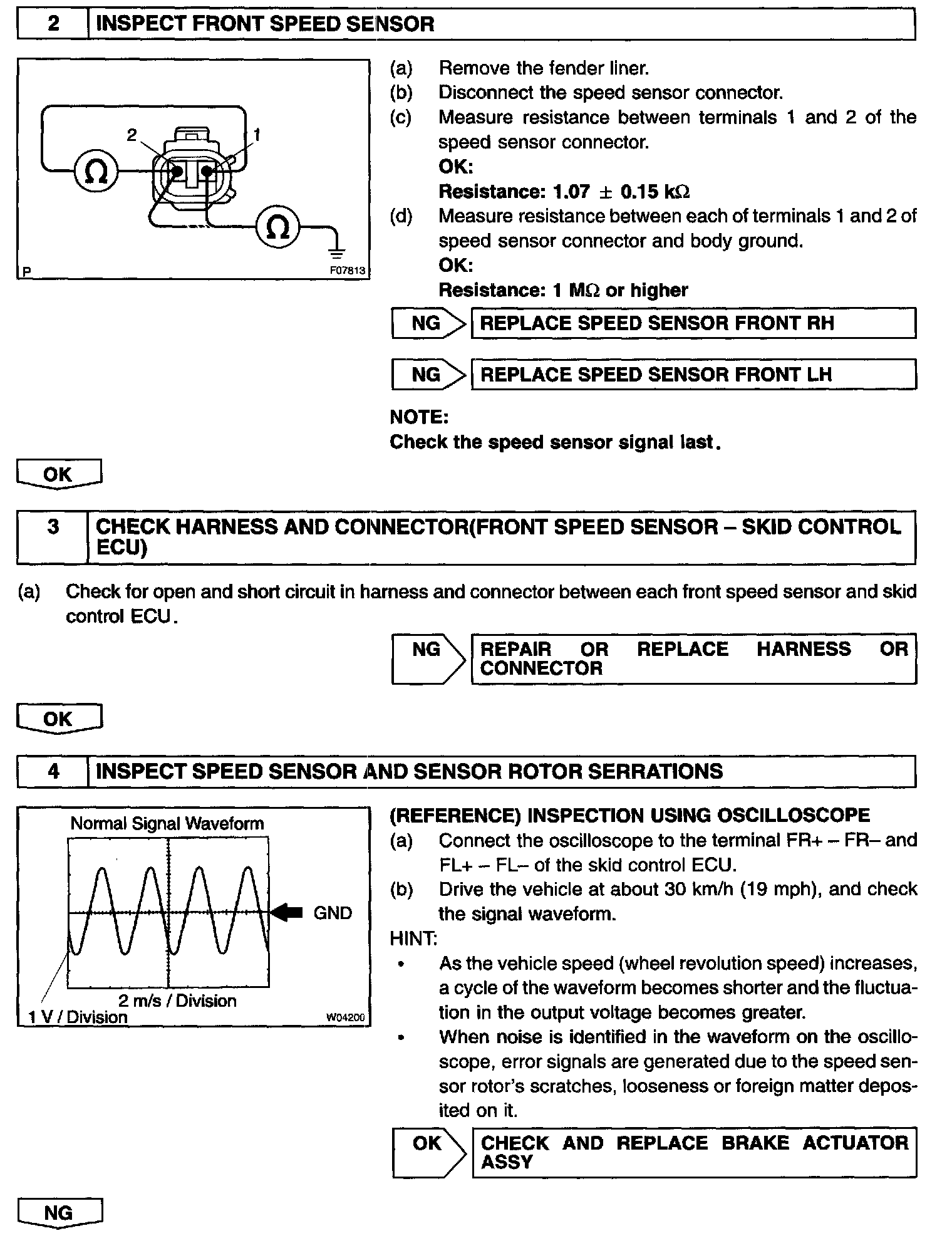 DTC C0200 RIGHT FRONT SPEED SENSOR CIRCUITCIRCUIT DESCRIPTION