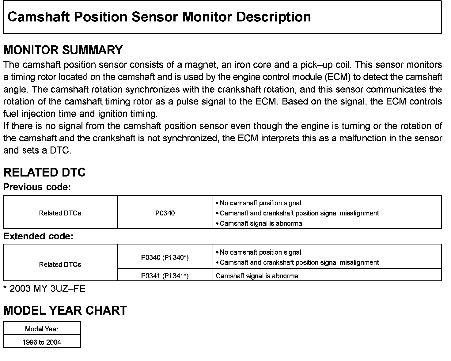 Camshaft Position Sensor Monitor Description