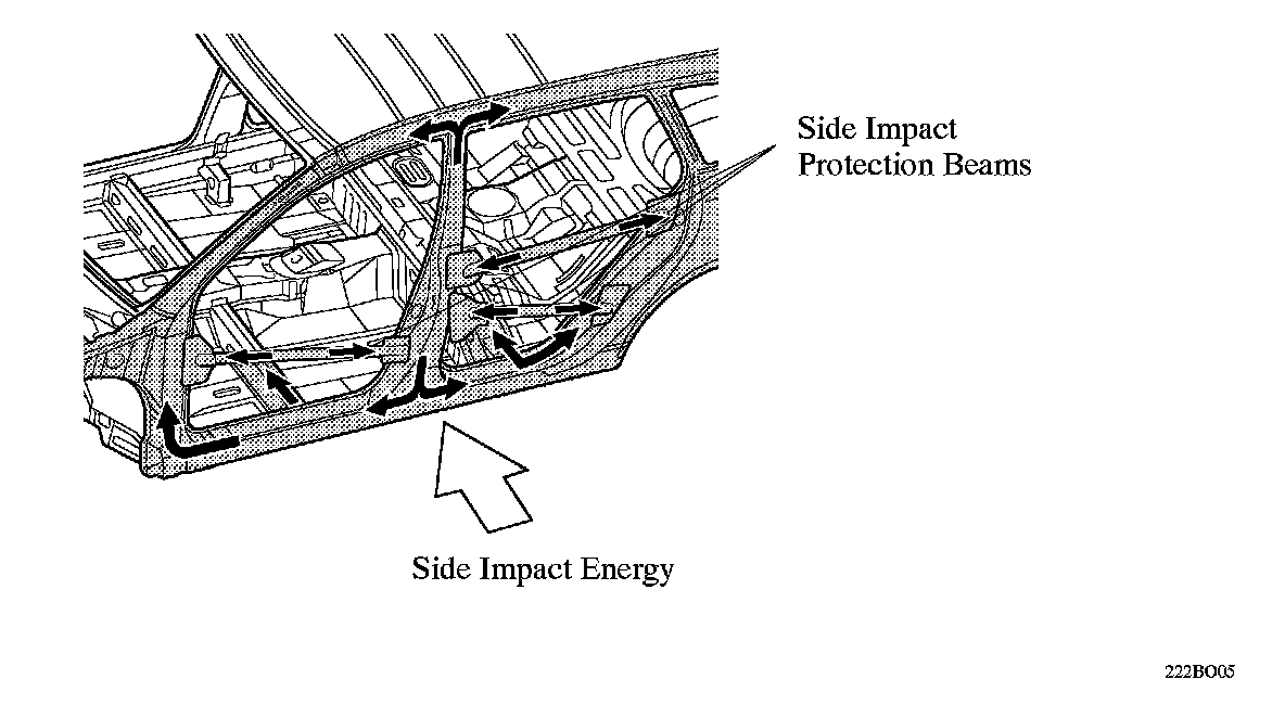 ^ One side impact protection beam is provided in each front door and two side impact protection beams are provided in each rear door. Furthermore, reinforcement is optimally located along the belt line to ensure the proper strength of the door.