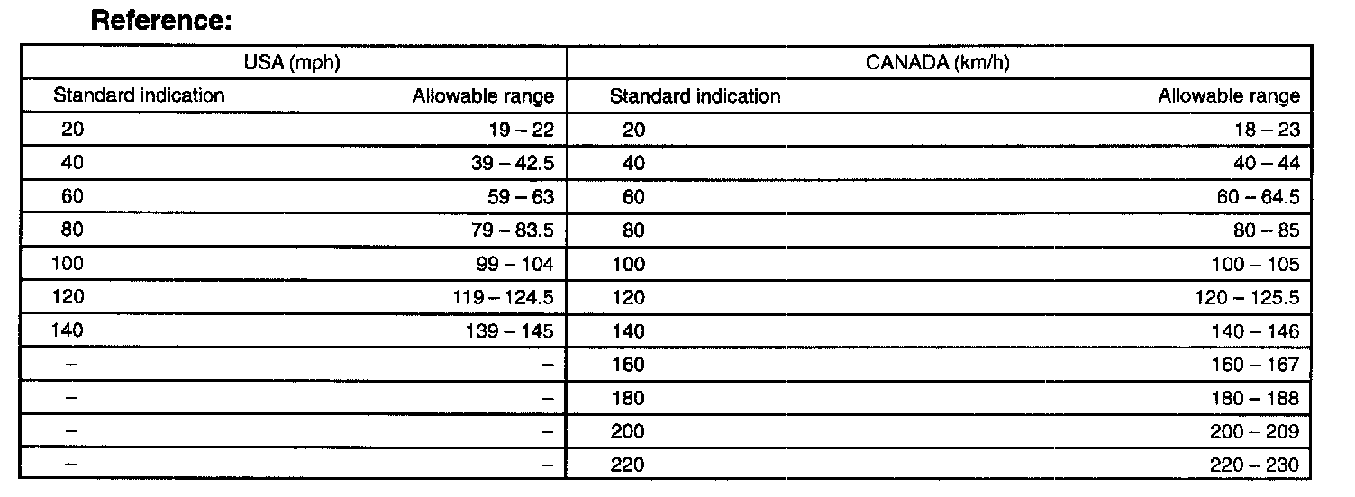 2. Check the deflection width of the speed meter indicator.
