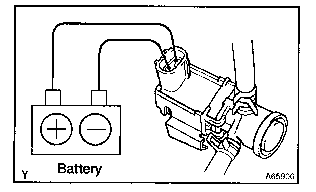 2. Connect the positive (+) and negative (-) leads from the battery to the VSV terminals for the EVAP.