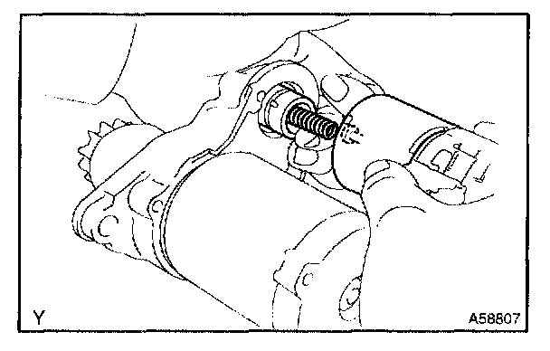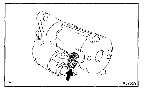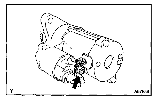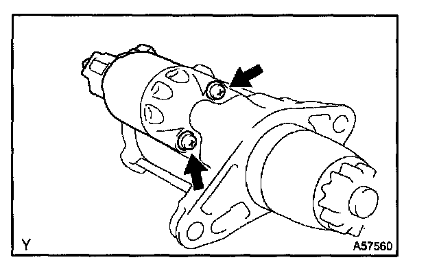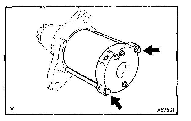 b. Remove the 2 through bolts, and pull out the starter yoke assy together with the commutator end frame assy.