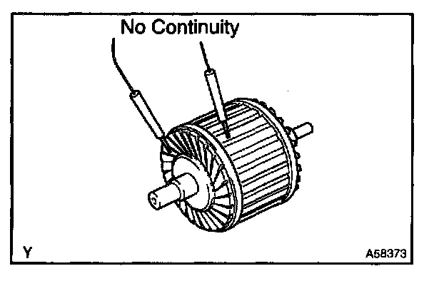 1. Using an ohmmeter, check that there is no continuity between the commutator and armature coil core.