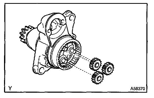 a. Check the gear teeth on the planetary gear, internal gear and starter clutch for wear or damage.