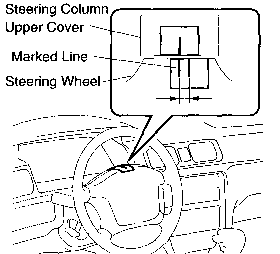 1. Apply masking tape on the top center of the steering wheel and steering column upper cover.