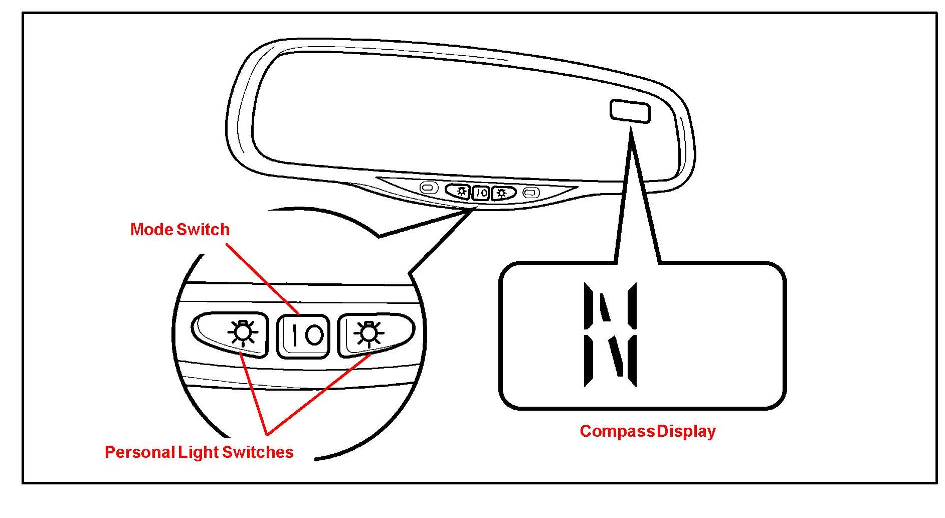 Some 2003 - 2006 model year Matrix vehicles are equipped with a compass in the rear view mirror. Use the following procedure to complete initial calibration of the compass during the ROAD TEST section of Pre-Delivery Service (PDS).
