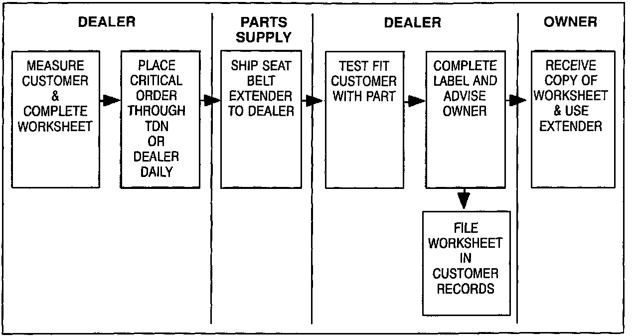 To assure utmost owner satisfaction, it is recommended that a dealership designate one person to coordinate all activities related to the Seat Belt Extender issue.