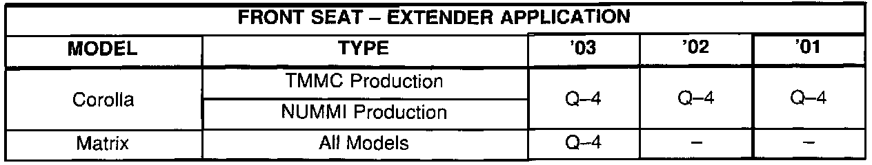 ^ Owners are informed of the Seat Belt Extender availability through the Toyota Owner's Manual included in each vehicle.