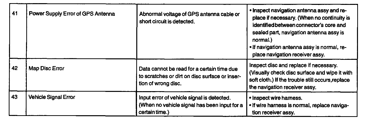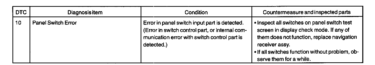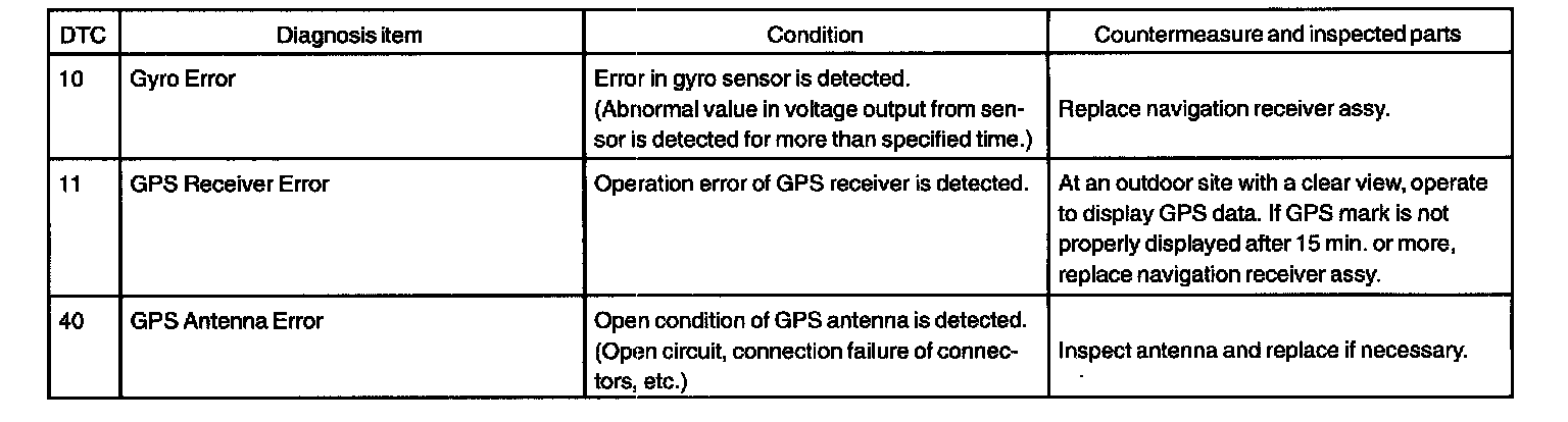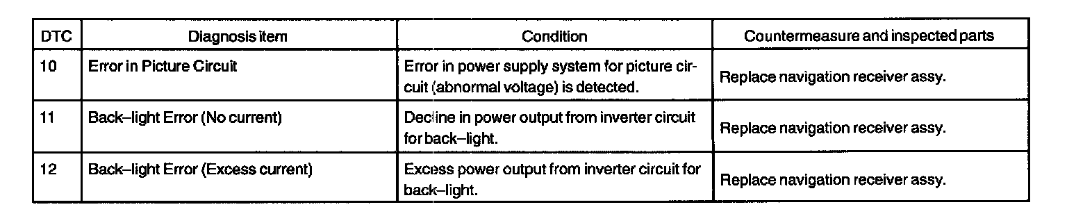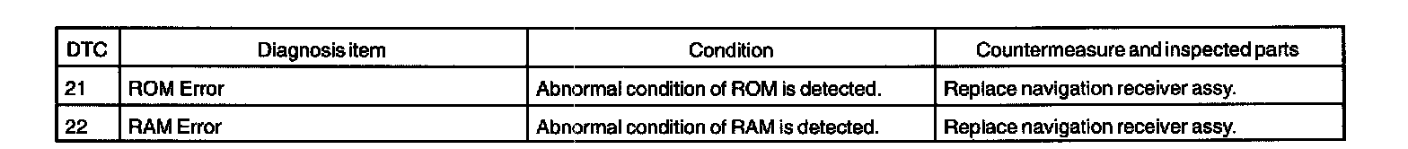 DIAGNOSTIC TROUBLE CODE CHARTRADIO AND PLAYER WITH DISPLAY [Navigation receiver assy] (Physical address: 140)