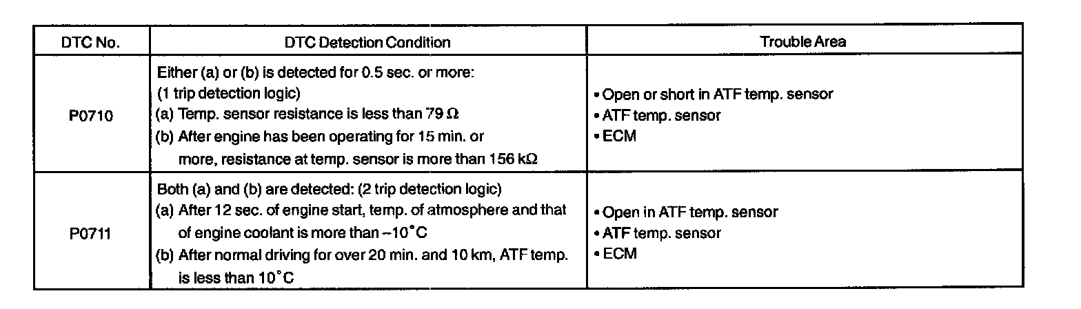 DTC P0710 TRANSMISSION FLUID TEMPERATURE SENSOR MALFUNCTIONCIRCUIT DESCRIPTION