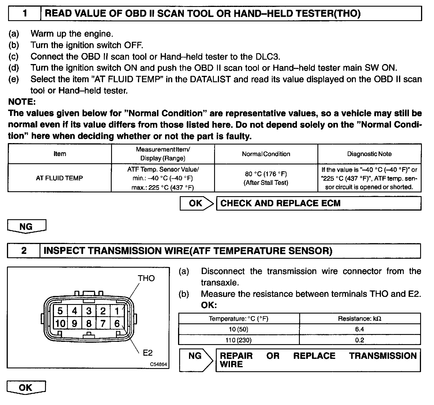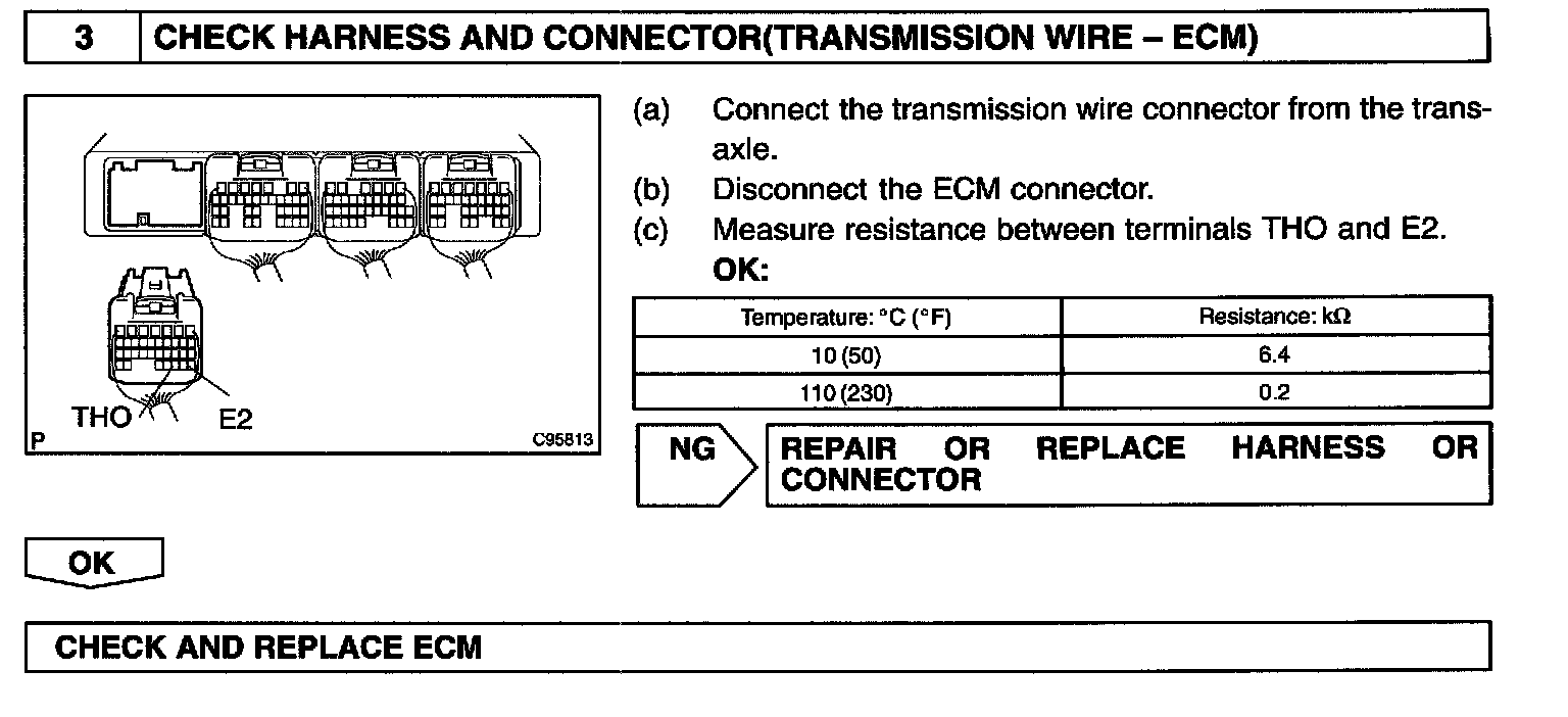 The ATF temperature sensor converts the fluid temperature into a resistance value which is input into the ECM.