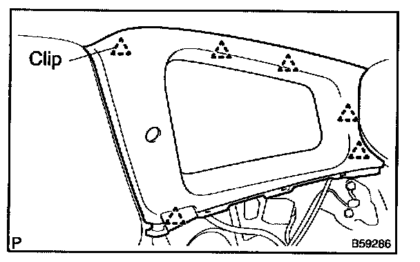 a. Remove the 2 clips and roof headlining assembly.