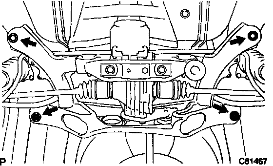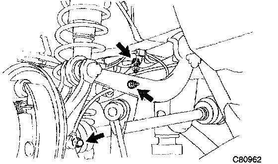 c. Remove the front side 3 bolts and rear suspension arm assy No.1 LH.