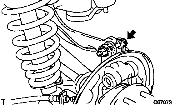 a. Insert the camber adjust cam assy from the front side of the vehicle, temporarily tighten with nut through the camber adjust cam No.2.