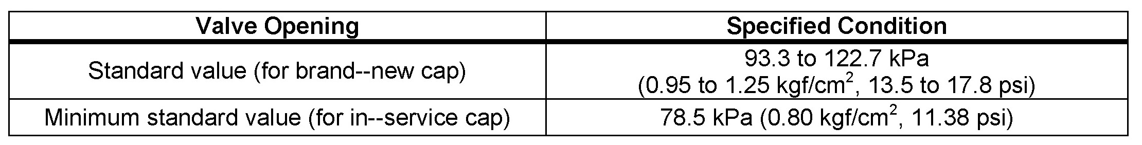 Stop pumping when the valve opens and read the gauge. The gauge must be within the standard values listed below when the pressure valve opens. The cap is considered OK when the pressure holds steady or falls very slowly, but holds within the standard values listed below for one minute.