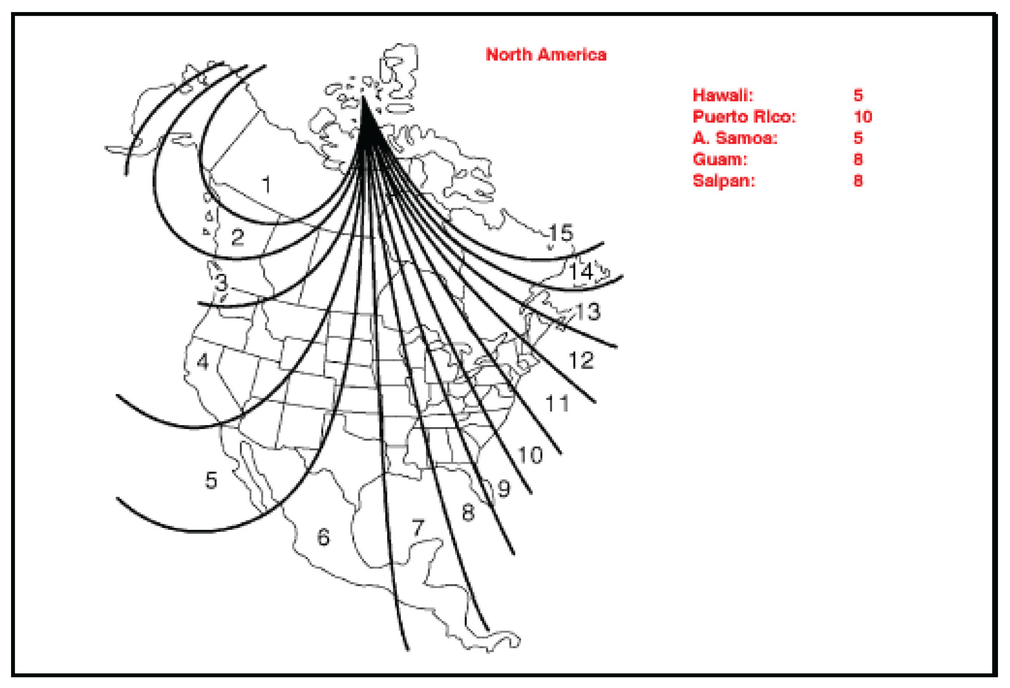 2. Push simultaneously both the right and left personal light switches for longer than 5 seconds until the zone number (1-15) appears on the display. Then push the right or left switch to select the number of the zone where the vehicle is located. See the map for zone reference.