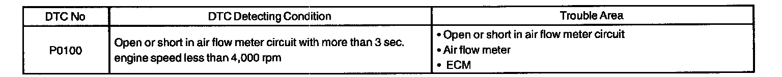 If the ECM detects DTC "P0100" it operates the fail-safe function, keeping the ignition timing and injection volume constant and making it possible to drive the vehicle.