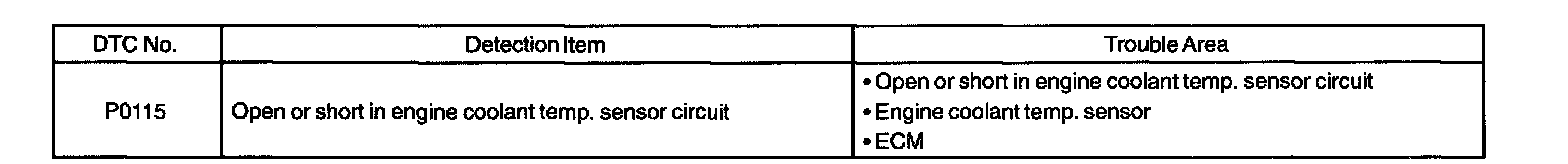 DTC P0115 ENGINE COOLANT TEMPERATURE CIRCUIT MALFUNCTIONCIRCUIT DESCRIPTION
