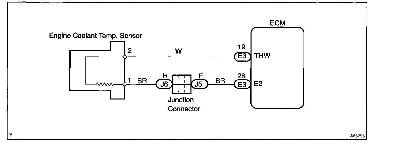 A thermistor built into the engine coolant temperature sensor changes the resistance value according to the engine coolant temperature.