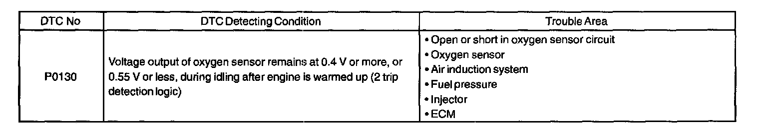 DTC P0130 HEATED OXYGEN SENSOR CIRCUIT MALFUNCTION (BANK 1 SENSOR 1)CIRCUIT DESCRIPTION