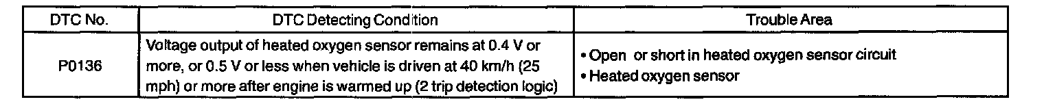 DTC P0136 OXYGEN SENSOR CIRCUIT MALFUNCTION 1 (BANK 1 SENSOR 2)CIRCUIT DESCRIPTION