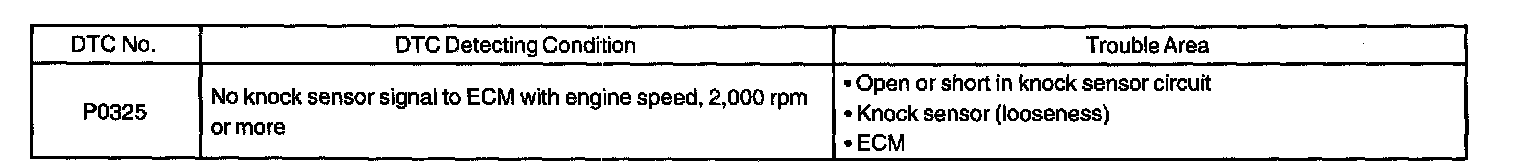 DTC P0325 KNOCK SENSOR 1 CIRCUIT MALFUNCTION (BANK 1)CIRCUIT DESCRIPTION